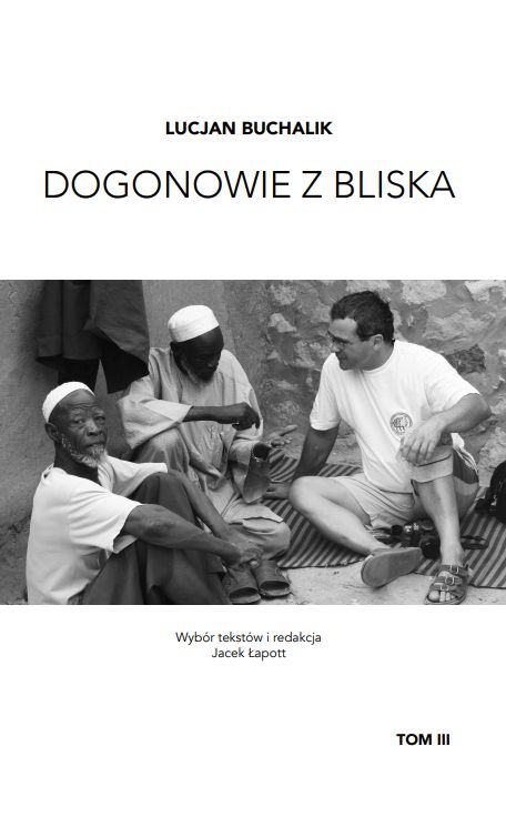 Kolejny, trzeci tom serii poświęconej Dogonom wypełniony jest publikacjami etnologa-afrykanisty – Lucjana Buchalika. To jeden z tych nielicznych badaczy, który nie potrafi pisać o Afryce bez bliskiego, wielokrotnego kontaktu z jej mieszkańcami. Tę pasję przejawiał już jako student, organizując w niełatwych warunkach komunistycznego systemu, w roku 1984, wyprawę do Afryki. Chociaż wyprawa nie zakończyła się spektakularnym sukcesem (prawie wszyscy jej uczestnicy musieli wracać awaryjnie do kraju), Lucjan Buchalik pozostał i z determinacją wyruszył na spotkanie z kulturą Dogonów. Następny wyjazd miał miejsce w 1990 roku, kiedy to dotarł kolejny raz do tego plemienia jako uczestnik Ekspedycji Etnologicznej SAHARA-SAHEL ’90 zorganizowanej przez Muzeum Narodowe w Szczecinie. A potem było już dużo łatwiej – wyjazd za wyjazdem. Zainteresowanie kulturą Dogonów dzielił z badaniami wśród ich sąsiadów – Kurumbami z Burkina Faso. Te niecodzienne, dualne badania zaowocowały oddzielną publikacją, która była jednocześnie jego dysertacją doktorską. Wyjazdy w te oba rejony (Mali, Burkina Faso) stały się może nie codziennością, ale „corocznością”. Żmudne obliczenia wykazały, że był w Afryce aż 40 razy, w tym 18 razy w kraju Dogonów. To swoisty rekord wśród polskich afrykanistów. Prócz działalności naukowo-badawczej pomagał także na miejscu różnym organizacjom pozarządowym w ich niełatwej pracy. Jednocześnie, jako Dyrektor Muzeum Miejskiego w Żorach, gromadził w trakcie swoich wyjazdów niemałe kolekcje eksponatów dla tej instytucji. Publikował nie tylko artykuły, ale i książki: Kolorowy sahel, Niewolnicy kobiet czy Dogon ya gali, a wymieniam tylko te obszerniejsze. Jako muzealnik publikował albumy poświęcone różnym materialnym artefaktom – nie tylko Dogonów i Kurumbów, ale również unikalnym kolekcjom będącym efektem zainteresowań Muzeum Miejskiego w Żorach, a zarazem dokumentującym dokonania Polaków w poznawaniu i opisywaniu kultur pozaeuropejskich świata.