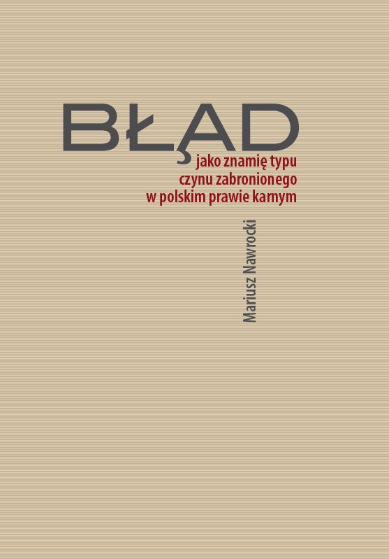 W książce przeanalizowano konstrukcję błędu jako ustawowego znamienia typu czynu zabronionego w polskim prawie karnym. Analiza ta została przeprowadzona z perspektywy pozostającej na uboczu dotychczasowych rozważańo błędzie. Należy mieć bowiem na uwadze, że przez dziesięciolecia błąd interesował przedstawicieli doktryny polskiego prawa karnego głównie z uwagi na próbęokreślenia jego istoty oraz ustalenia wypełnianych przez błąd funkcji, zwłaszczana polu wyłączenia odpowiedzialności karnej z uwagi na niemożność przypisania winy, a w ostatnim czasie również z uwagi na ograniczenia strony podmiotowej czynu zabronionego. Ponieważ celem pracy jest analiza błędu jako ustawowego znamienia typu czynu zabronionego3, to z przyczyn oczywistych występują w niej liczne odwołania do regulacji części szczególnej kodeksu karnego. Ukazuje to zarazem istotną różnicę między przedmiotem badań, których efektem jest niniejsze opracowanie, a dotychczasowym podejściem do analizy konstrukcji błędu w prawie karnym, gdzie na pierwszym planie były rozważania związane z przepisami części ogólnej kodeksu karnego.